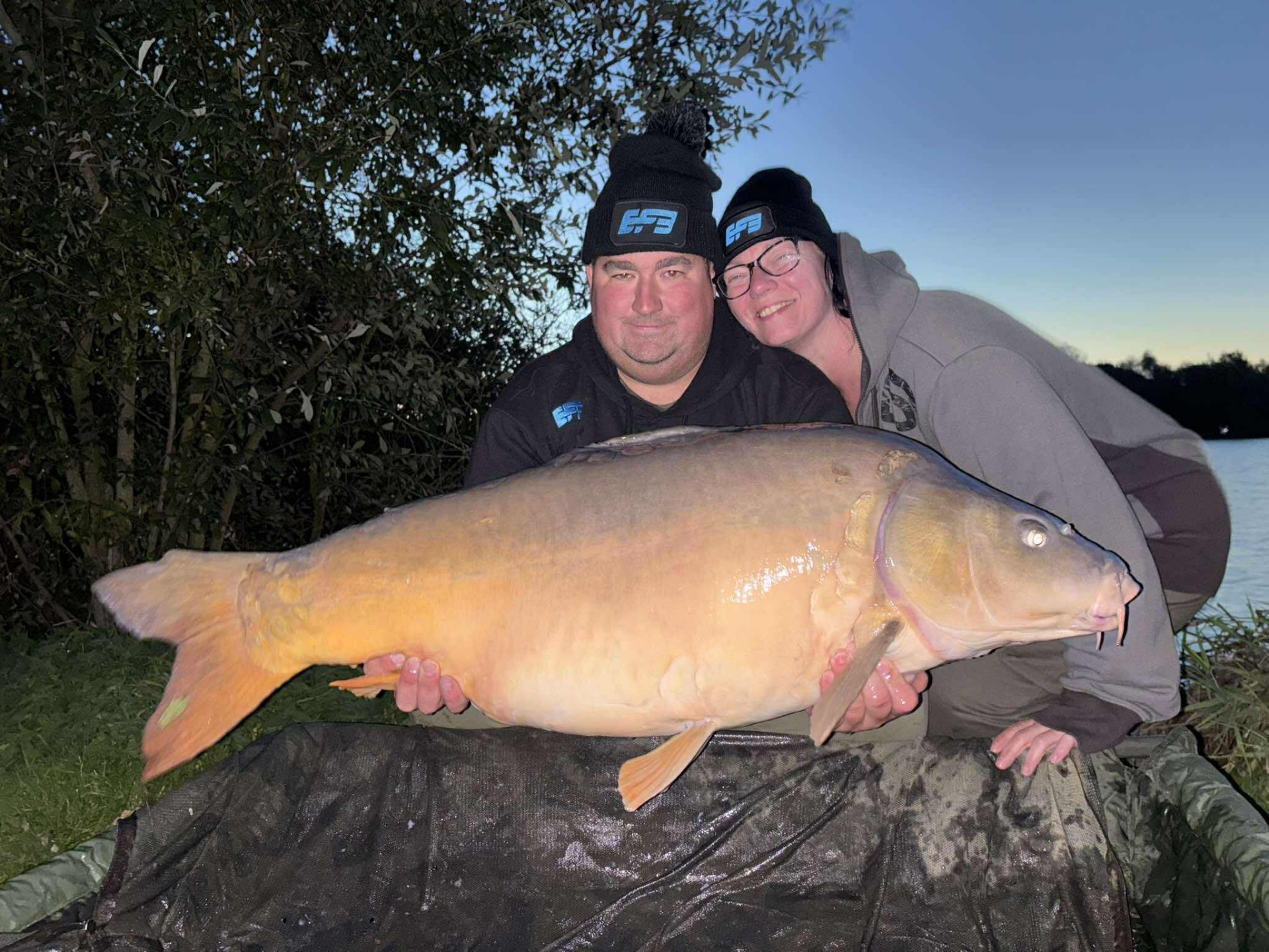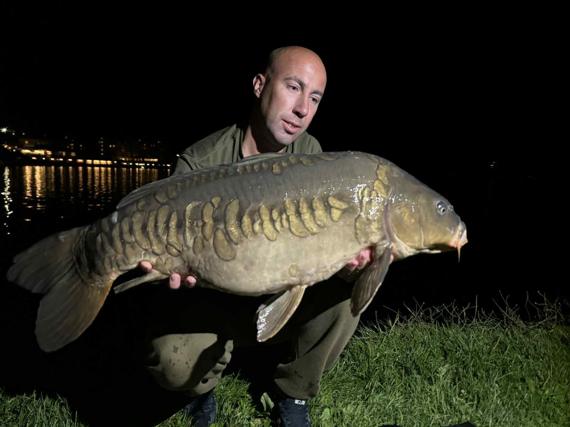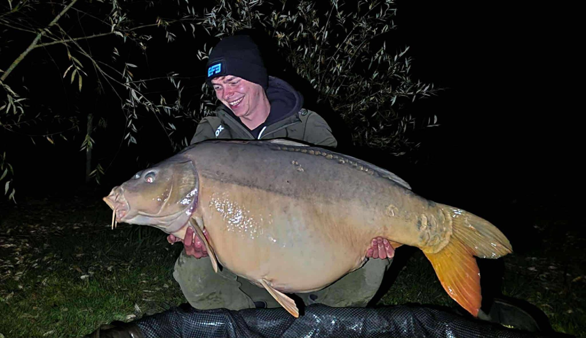 Voor dit korte kanaalavontuur vertrouwden we op de vangkracht van FKS. Nog voor de nacht volledig viel, mocht ik de eerste vis verwelkomen: een schubkarper van een respectabele 5 kilogram. Het duurde niet lang voordat het de beurt was aan Thomas. Zijn hengel kromde diep en na een spannende dril lag er een prachtige spiegelkarper in het net, een waar monster die we uiteraard vereeuwigden op de gevoelige plaat.