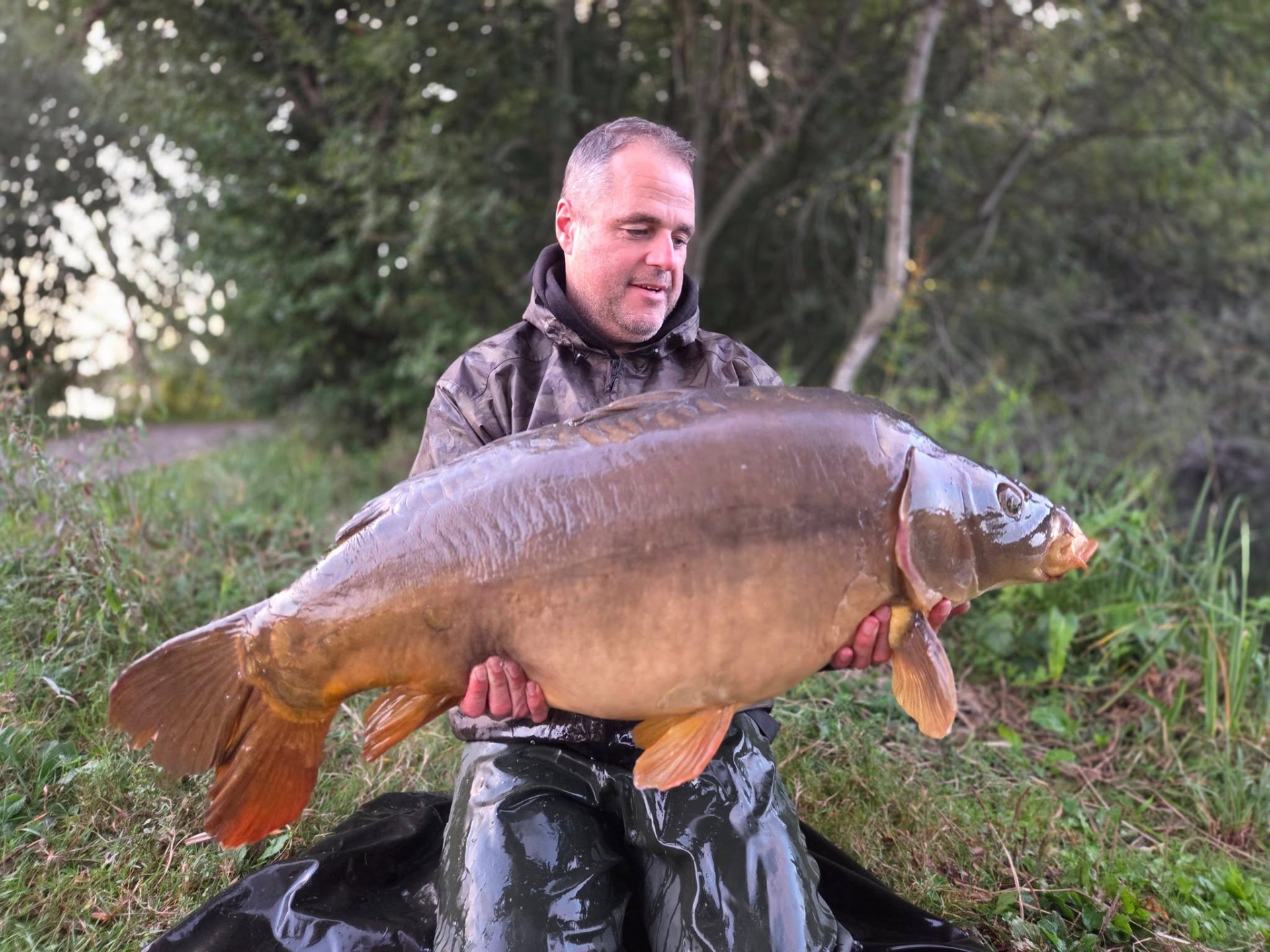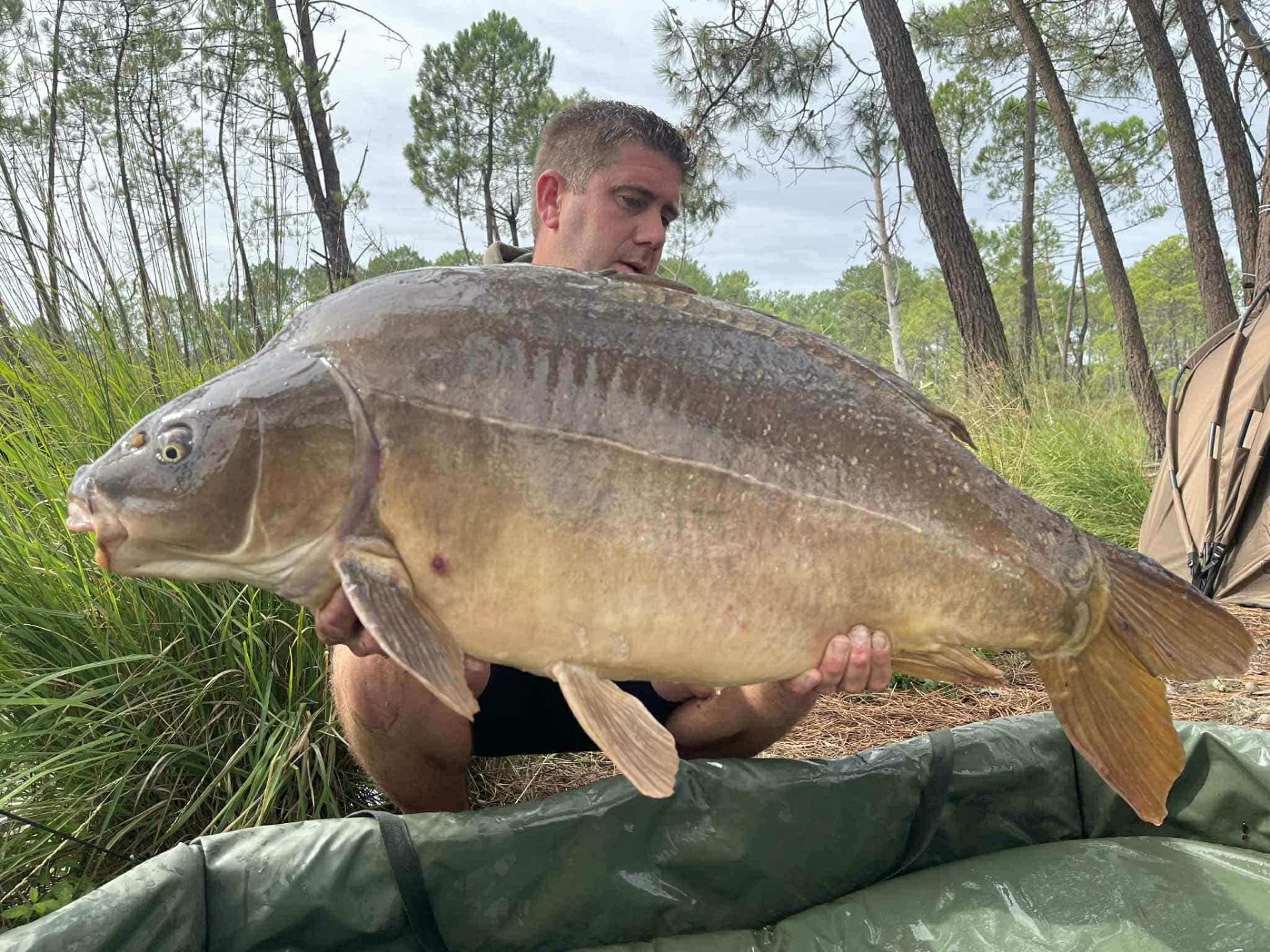 De dril was intens, met een paar stevige runs die mijn hartslag flink omhoog jaagden. Toen ik deze schitterende spiegel in het net zag glijden, wist ik meteen dat het om een speciale vis ging. De weging bevestigde mijn vermoeden: 13kg5 pure schoonheid!